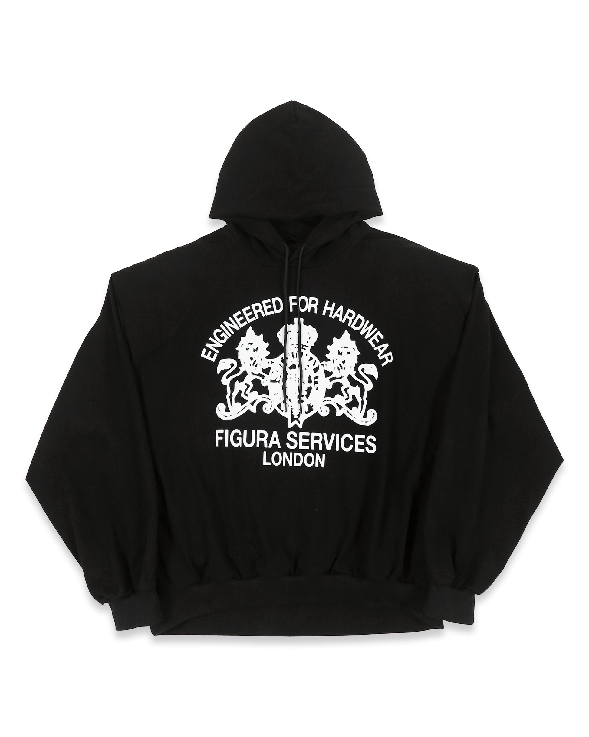 Hoodie in heavyweight cotton jersey. Unisex. Padded shoulders. Drawstring at hood. Graphic printed. Rib cuffs. Distressed rib hem. Elasticated hem at back.